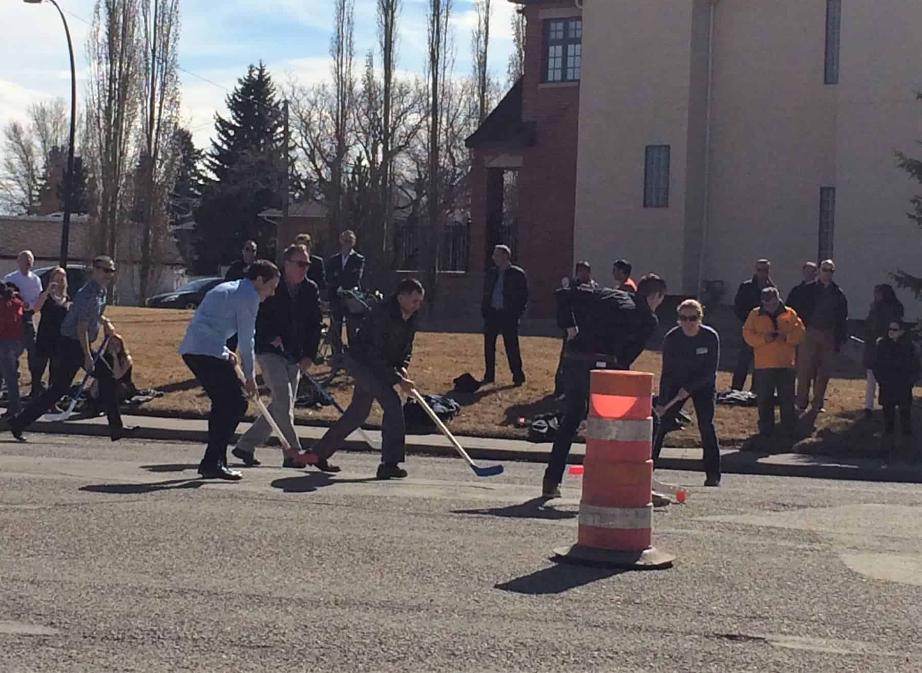 Un match de hockey dans la rue à Calgary. Dans une intersection du quartier Bridgeland, un match de hockey a été organisé pour les participants au Symposium Safe and Smooth de 2015. Ce match, qui a eu lieu dans un espace équivalent à la largeur d’une rue, n’a pas ralenti la circulation automobile ! Dès l’année suivante, la Ville de Calgary a annoncé que, la rue deviendrait un parc permanent. En Alberta, c’est l’organisation Sustainable Calgary qui est partenaire du Projet quartiers verts.