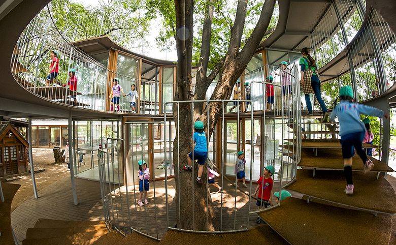 Toit et cour intérieure de l’école Fuji à Tokyo (photo : Takaharu Tezuka)