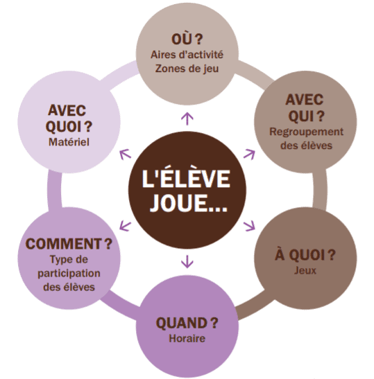 Que votre cour d'école ait été récemment aménagée, ou qu'elle reste en l’état pour les prochaines années, il est important de s'assurer d'en tirer son plein potentiel. Les choix de programmation, de délimitation des aires d’activité et de gestion du matériel font partie des décisions à prendre.