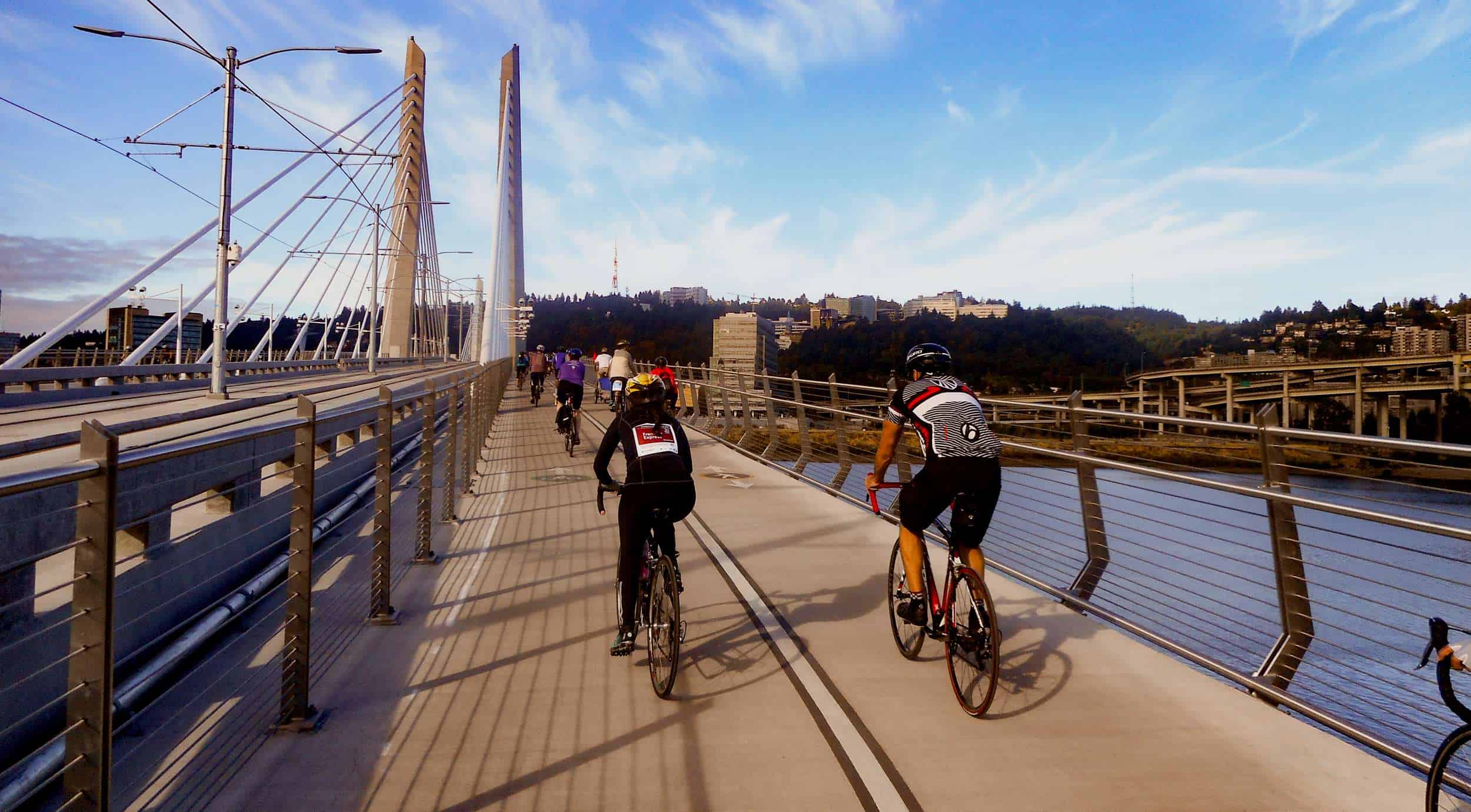 Les passerelles pour piétons et vélos ne datent pas d’hier. Par contre, la construction d’ouvrages majeurs réservés au transport actif constitue une tendance plus récente. La ville de Copenhague, par exemple, a inauguré en 2014 son « pont serpent », un remarquable ouvrage sinueux de 220 mètres, réservé aux cyclistes. Et ici, en Amérique, la ville de Portland a inauguré en 2015 un « pont non véhiculaire » de 525 mètres, le Tilikum Crossing, destiné aux trains, aux tramways, aux véhicules d’urgence, aux cyclistes et aux piétons.